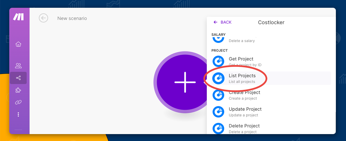 Vytvořte scénář a začněte s modulem List Projects (Seznam projektů).