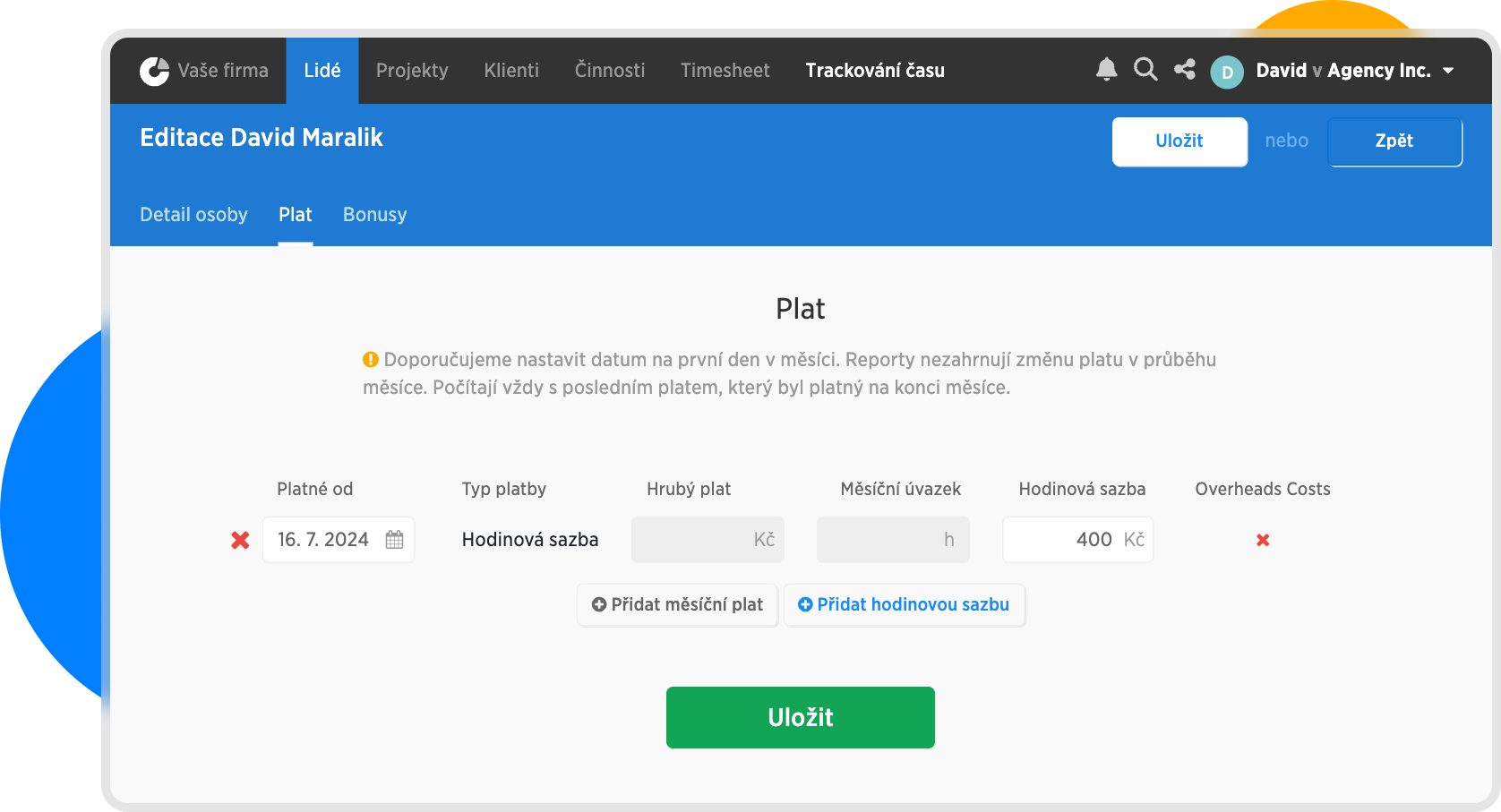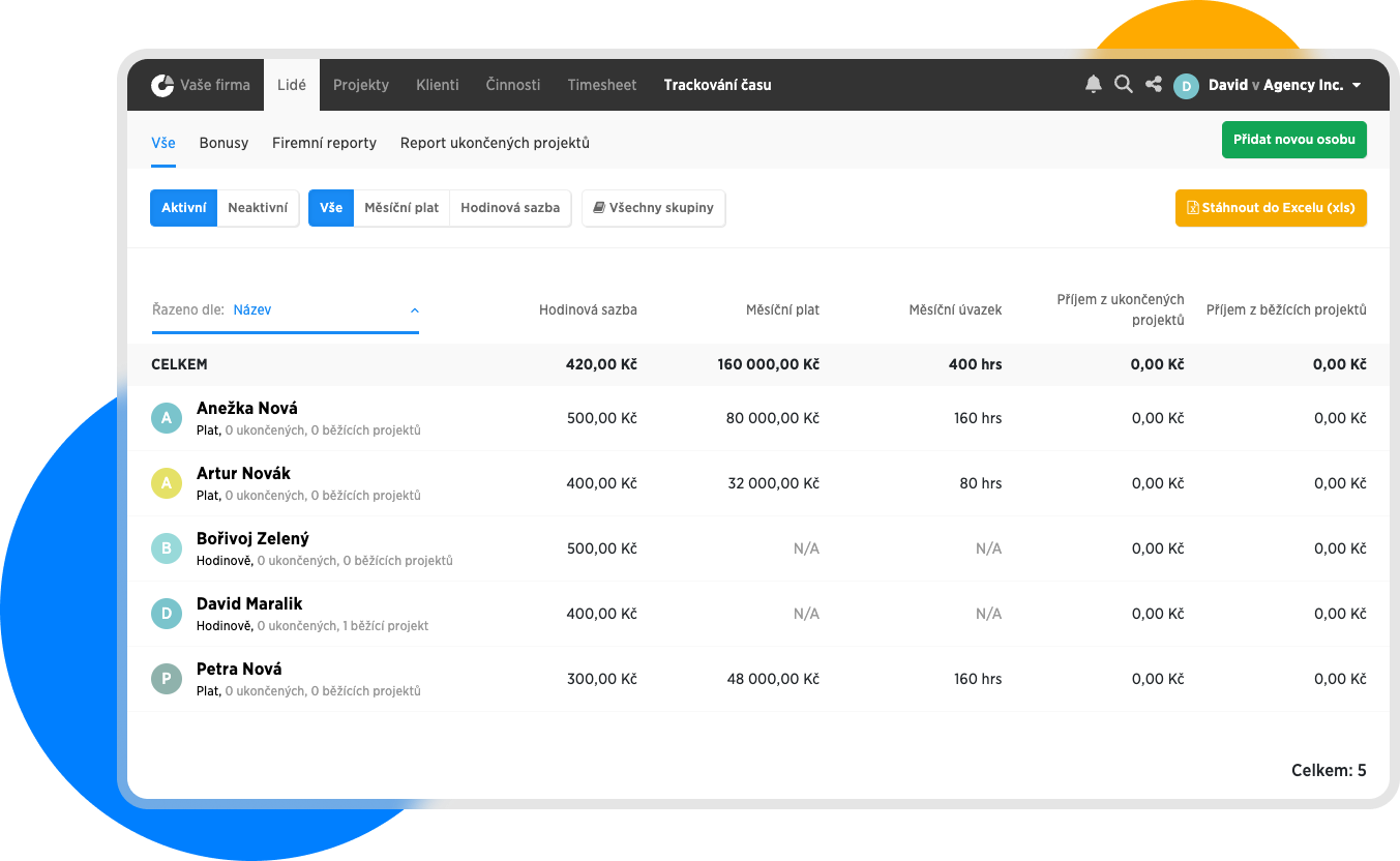 | Anežka Divoká | Zaměstnanec | Plat | 80 000 Kč, 160h / měsíc |