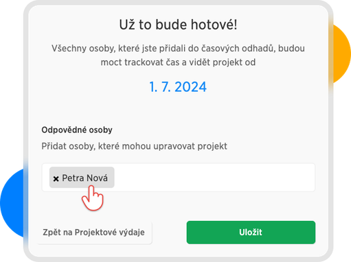 Přidání zodpovědné osoby při tvorbě projektu