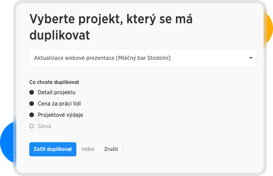 Po kliknutí na tlačítko Začít duplikovat, se nám předvyplní všechny vybrané data a pole si můžeme libovolně upravit, tak jako při tvorbě nebo editaci projektu.