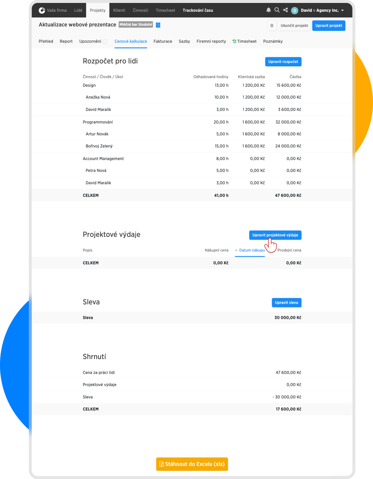Otevřeme si existující běžící projekt, přejdeme do Cenové kalkulace a v části Projektové výdaje klikneme na Upravit projektové výdaje: