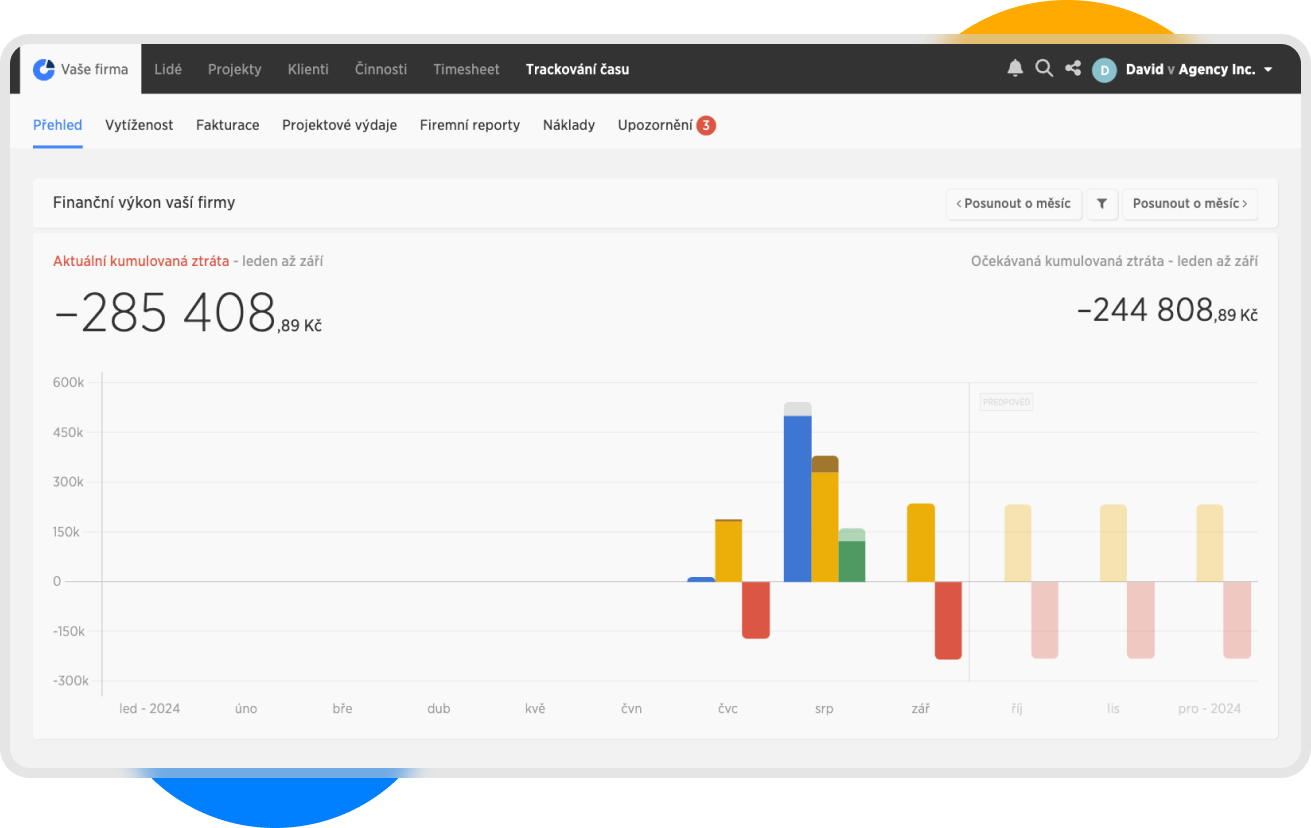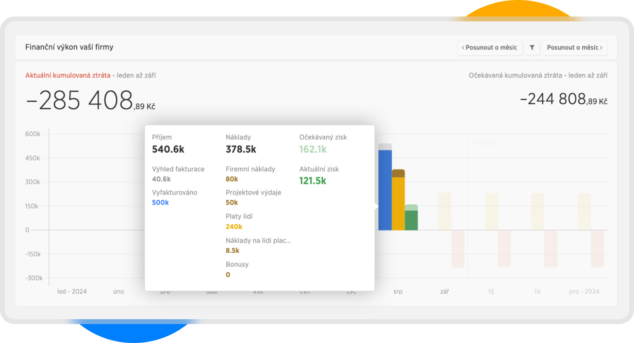 První sloupec nám ukazuje příjem - ten je v tomto grafu reprezentován fakturací. Počítají se nám zde: