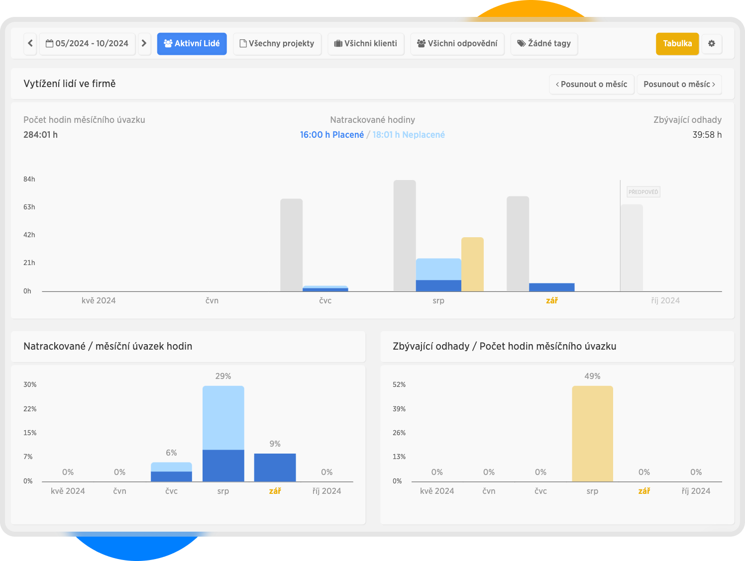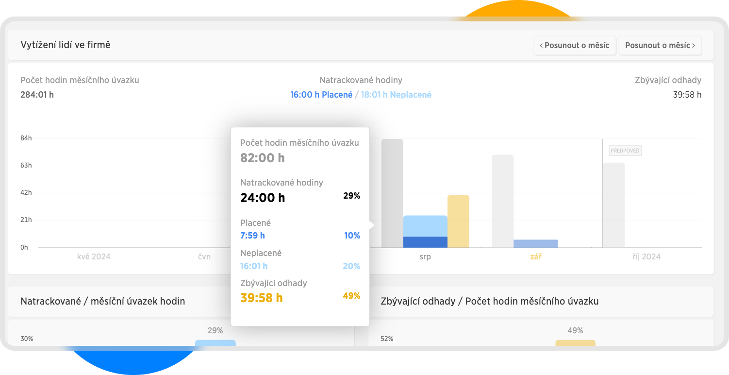 V našem příkladu vidíme, že jsme v měsíci srpnu využili pouze 29% hodin měsíčních úvazků.