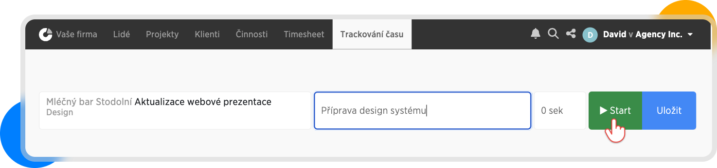 My zvolíme Příprava design systému, a následně spustíme stopky tlačítkem start.