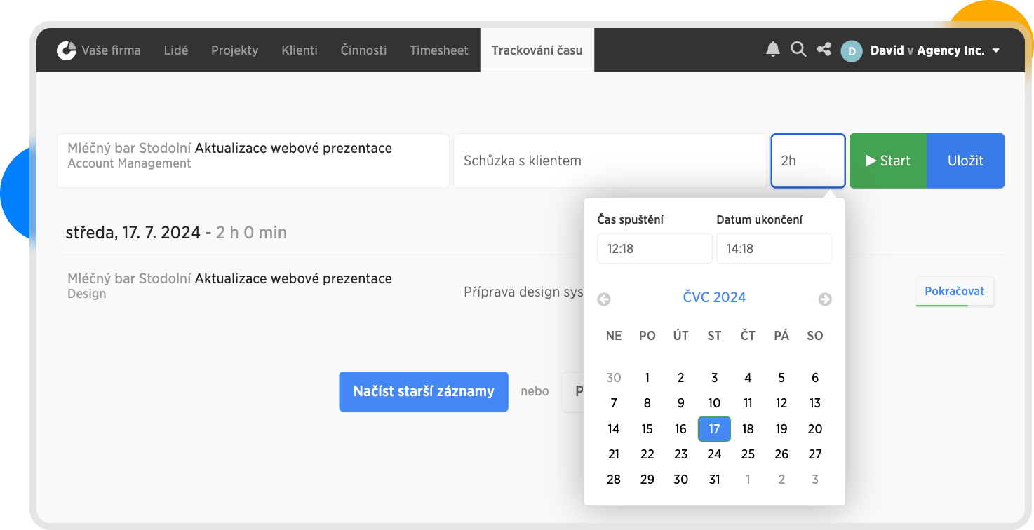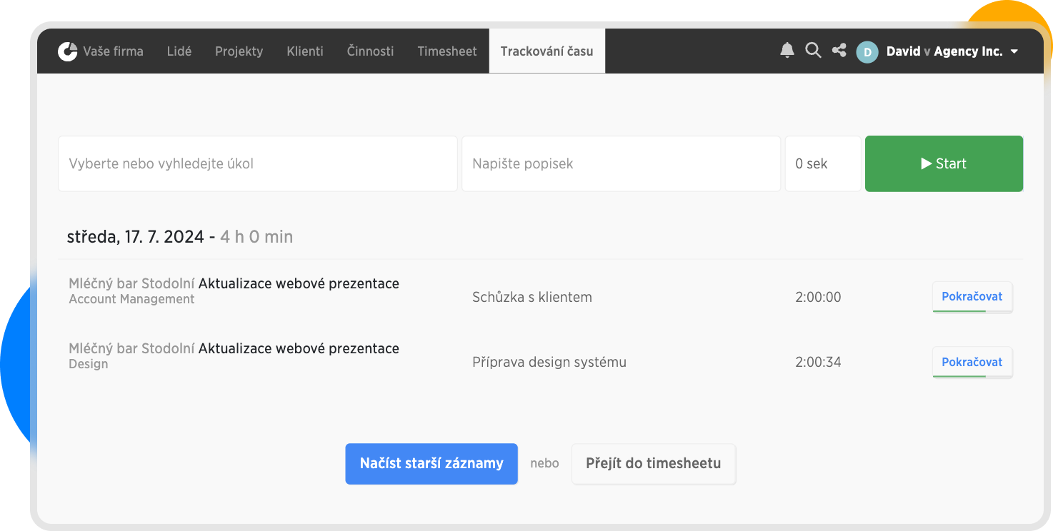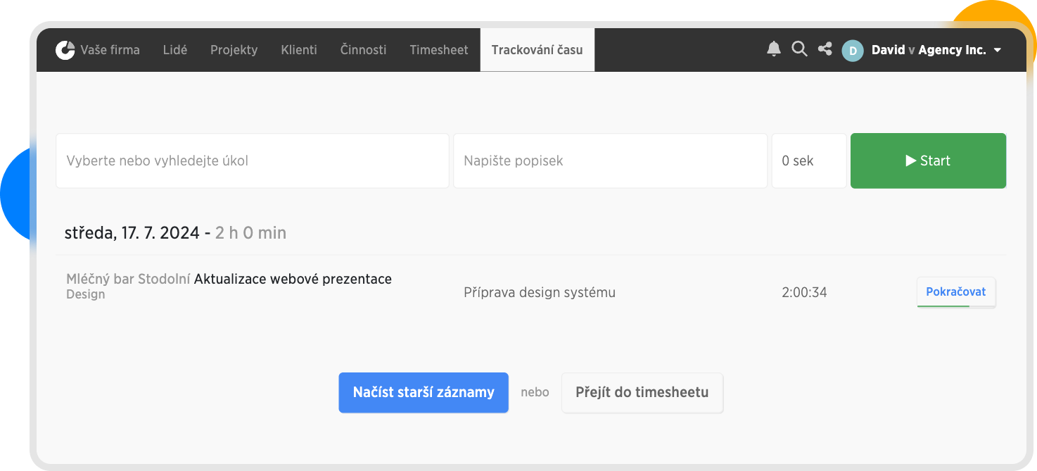 Denní záznam času slouží pro přidání časových záznamů do timetrackingu.
