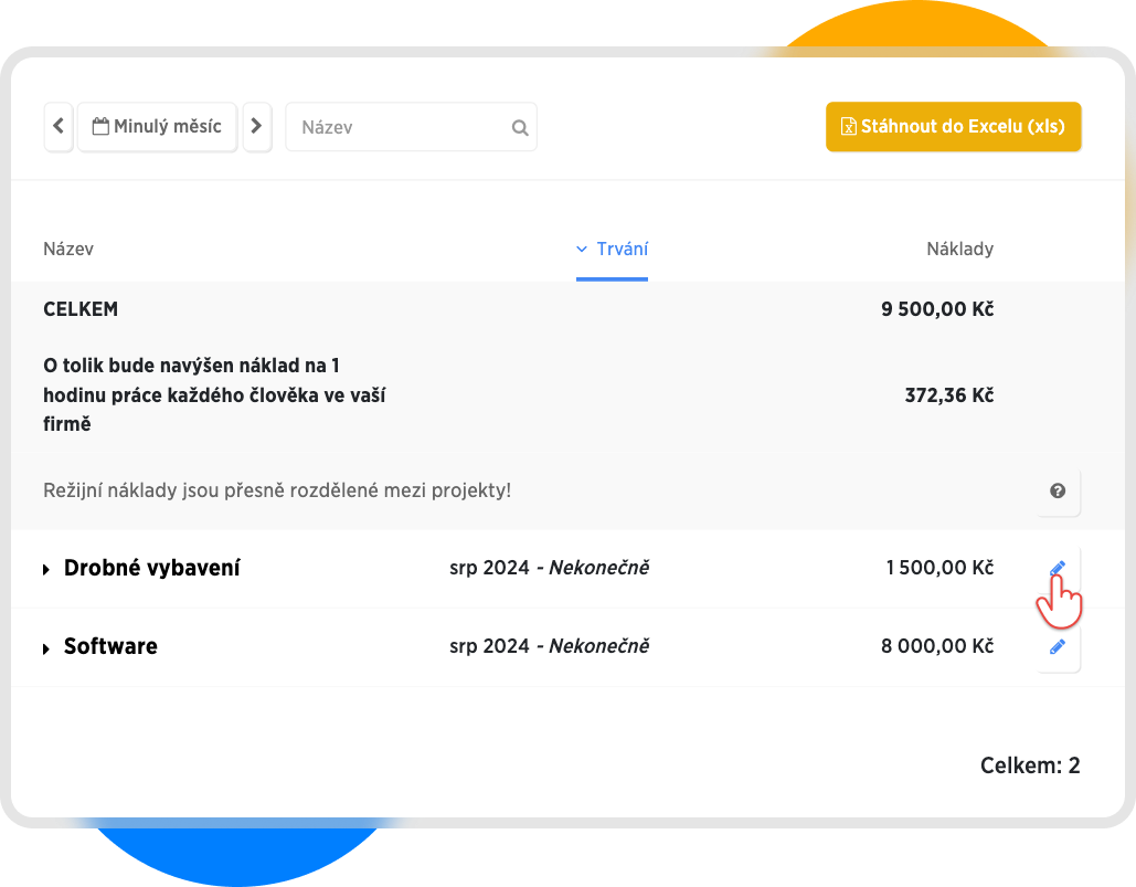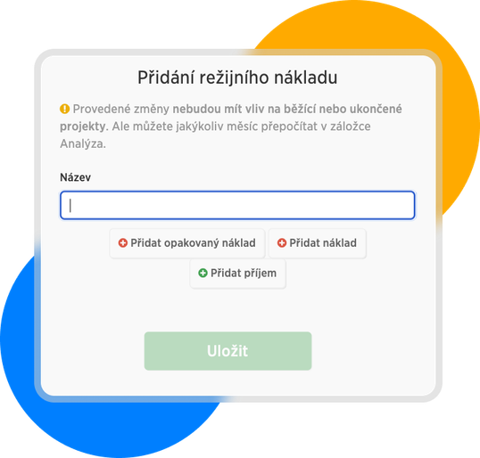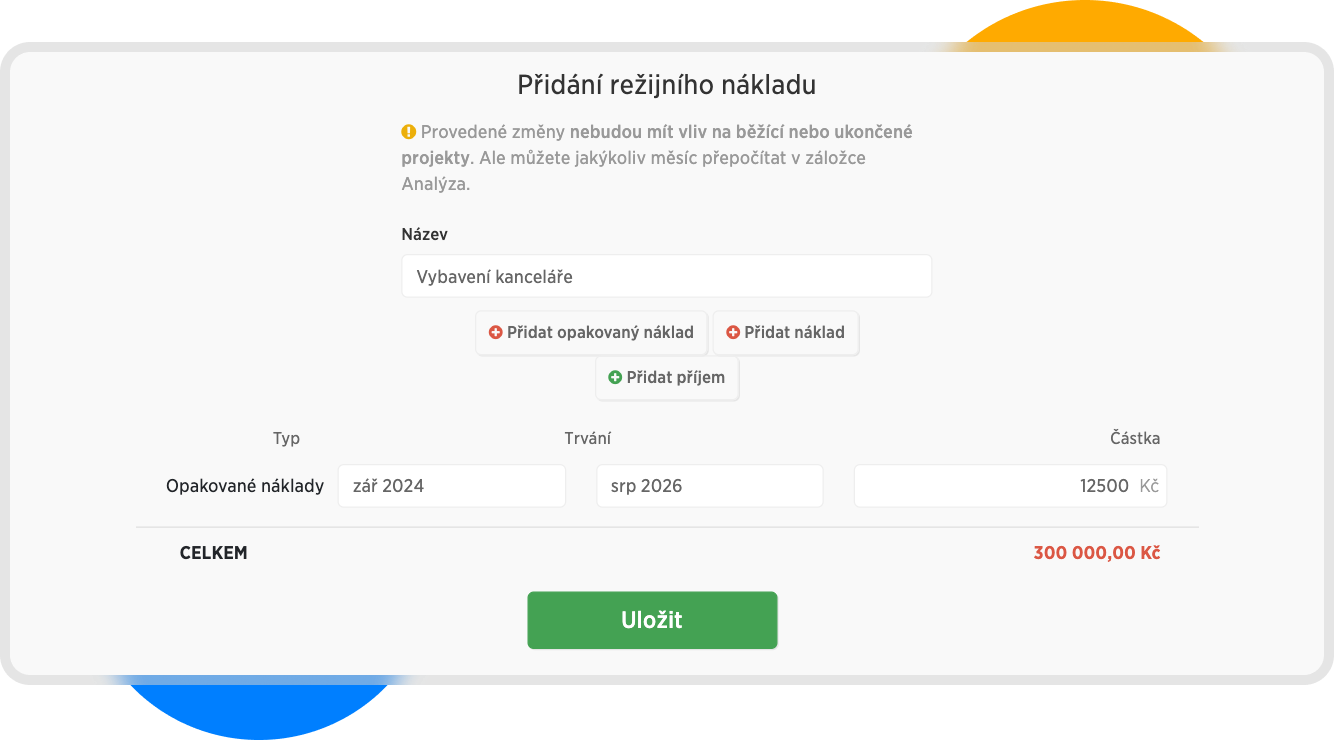 Pokud tyto náklady budeme evidovat v Costlockeru, budou automaticky rozpočítány do všech projektů.
