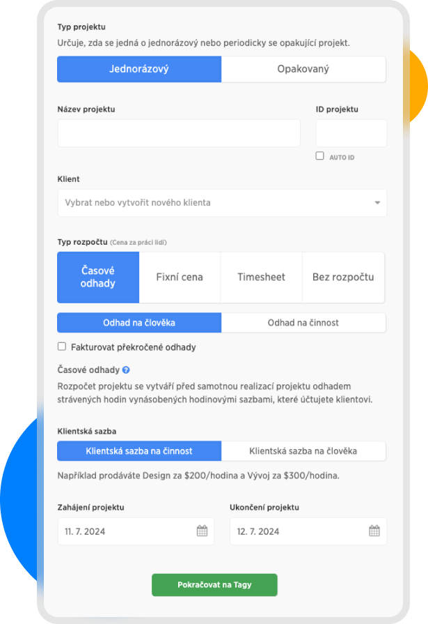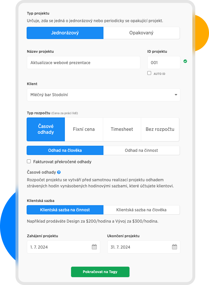 V naší ukázce používáme typ rozpočtu Časové odhady: